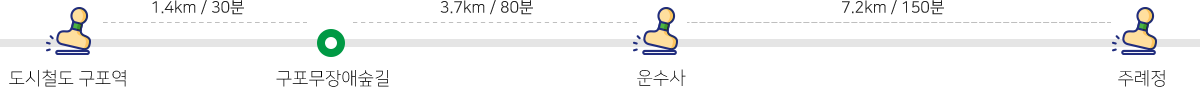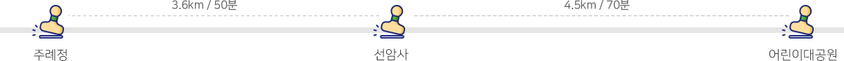 - 구간에 배치된 스탬프 3개를 모두 찍어오면 해당 코스 구간을 완보한 것으로 인정됩니다.